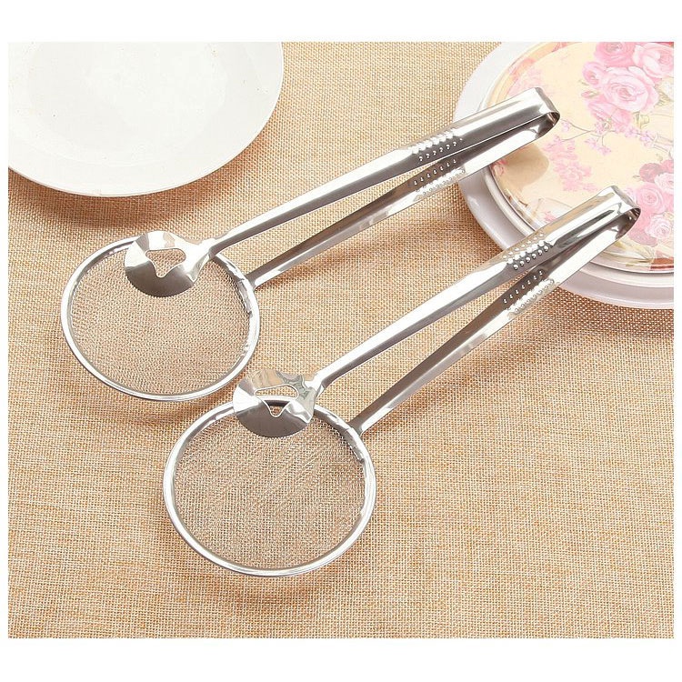 Kẹp Vợt Gắp Thực Phẩm Chiên Rán Thép Không Gỉ, Vớt Cặn Dầu Chiên Có Lưới, Kẹp Gắp Ráo Nước Đồ Ăn Tiện Lợi