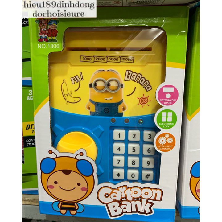 Sản phẩm là chiếc két chạy pin, có cài đặt mật khẩu để bé đựng tiền, có nhiều chủ đề như ảnh (Khách chat chọn chủ đề), Chi tiết hướng dẫn các đổi mã có thể tham khảo trên vỏ hộp hoặc trên mạngShop sẽ lắp pin tặng khách và test trước khi giao cho bên vận chuyển