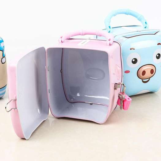 -Két sắt mini lợn là 1 sản phẩm được thiết kế khá độc đáo có lỗ để bỏ tiền như con lợn đất, có thể mở ra và khóa vào- Có nhiều màu để các bé lựa chọn