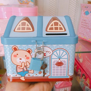 Két đựng tiền mini hình ngôi nhà cho bé yêu | Hộp tiết kiệm mini có khóa.