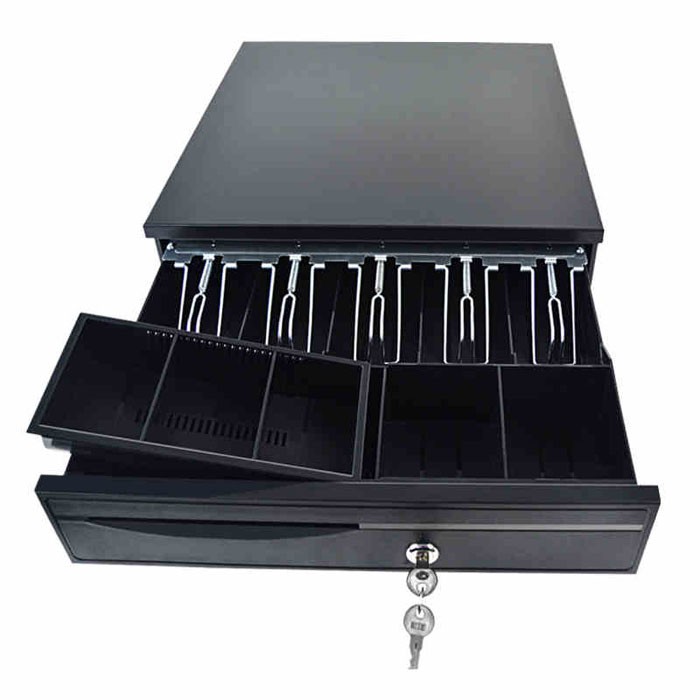 Sản phẩm có thể kết nối với máy in đẩy hộp tiền ra khi thanh toán. Hoặc sử dụng chìa khóa để mở tủ.