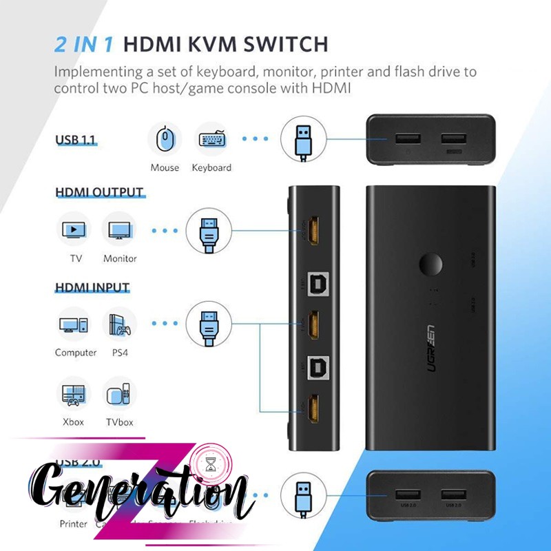 Thương hiệu: Ugreen | Xem thêm các sản phẩm KVM Switches - Switch HDMI của UgreenMô tả ngắn