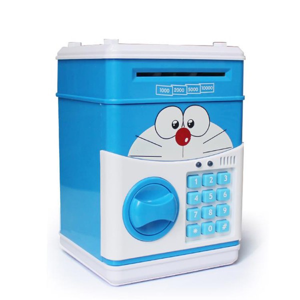 Thiết kế nhỏ gọn phiên bản như két thật, màu sắc với nhân vật Doremon đáng yêu, bên trong có 1 ngăn nhỏ, hệ thống khóa với mã số an toàn.