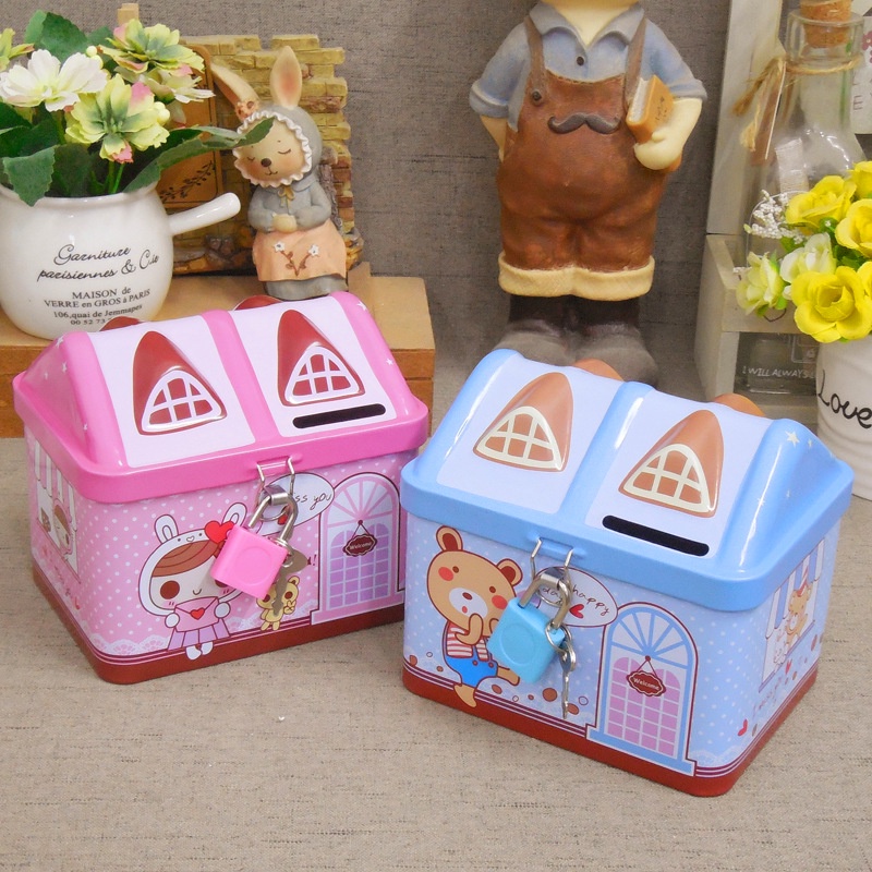 Két Sắt Hình Ngôi Nhà Cho Bé Có ổ Khóa