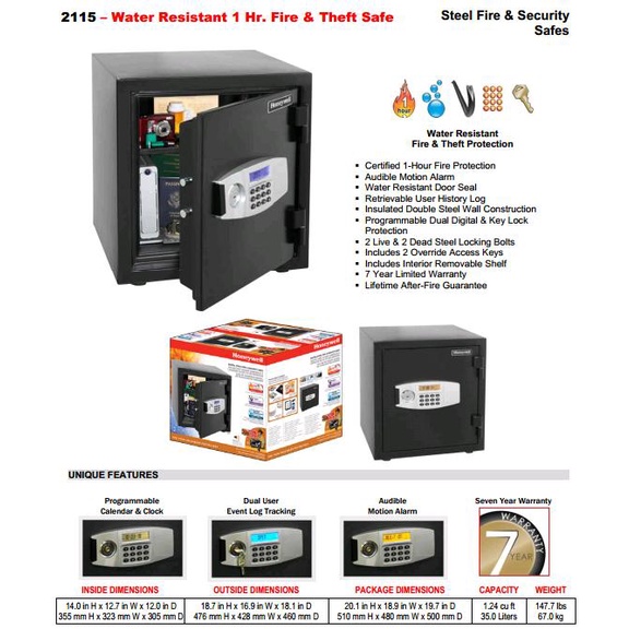 Két sắt Honeywell 2115 lần đầu tiên xuất hiện tại Việt Nam. Được thiết kế và chế tạo để chống cháy và chống nước nhằm bảo vệ tài sản bên trong một cách an toàn nhất, Khả năng chống lửa lên đến 1.700 ° F/927°C trong 1 giờ liên tục đã được UL và ETL kiểm nghiệm và cấp giấy chứng nhận quốc tế