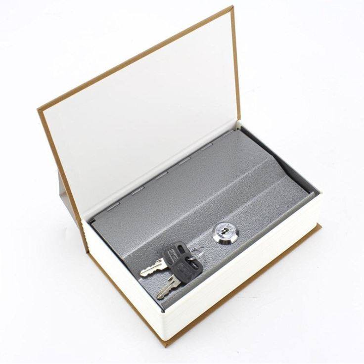 Bề ngoài như một cuốn sách nhỏ ẩn bên trong là một két sắt mini.Là nơi an toàn để cất giữ những đồ vật có giá trị như chìa khoá; đồ trang sức; thẻ tín dụng... ở một vị trí thuận tiện và dễ dàng di chuyển.