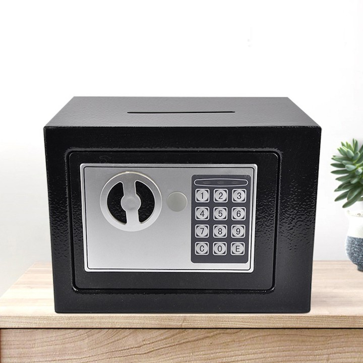 - Két sắt mini được trang bị bộ khóa điện tử có thể đặt mã số theo ý muốn