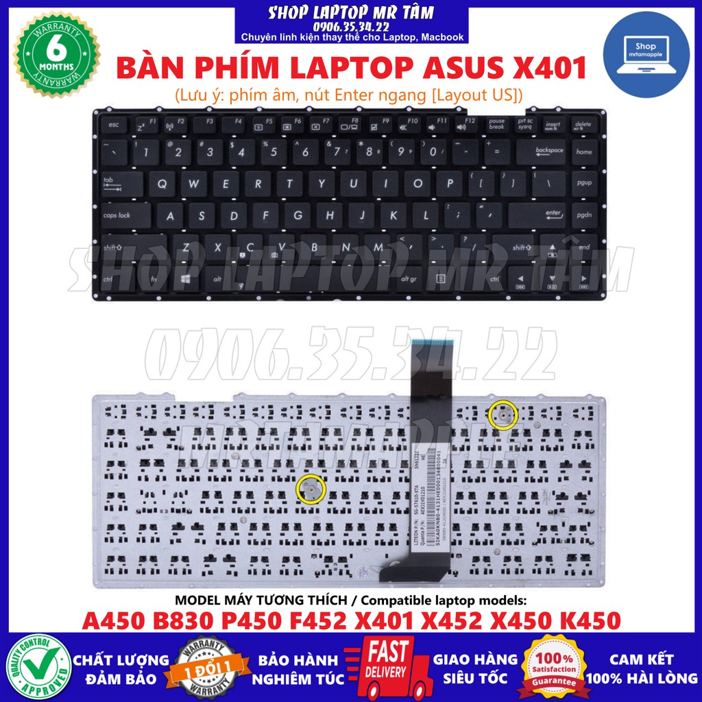 (KEYBOARD) BÀN PHÍM LAPTOP ASUS X401 dùng cho A450 B830 P450 F452 X401 X452 X450 K450