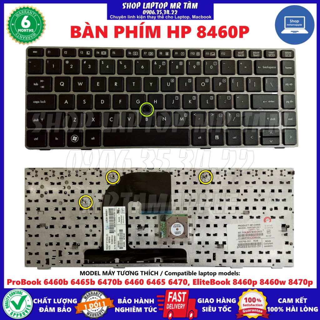 (KEYBOARD) BÀN PHÍM LAPTOP HP 8460/6460 (CÓ KHUNG)tương thích dùng chung cho các model laptop sau / Fit for: