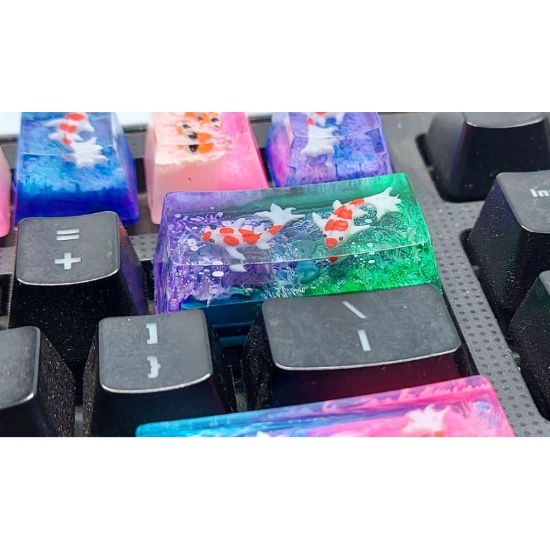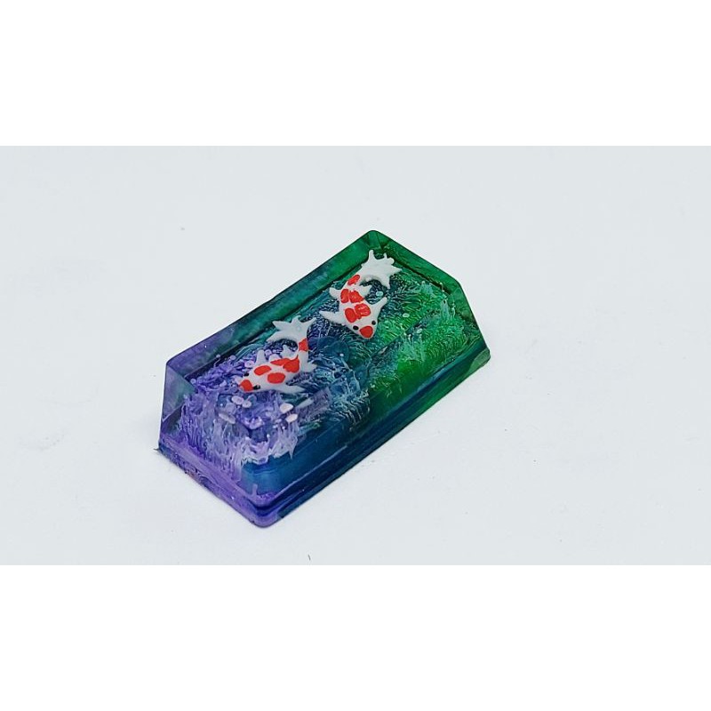 Keycap artisan cá koi 2U trang trí bàn phím cơ gaming (tone tím xanh)Chất liệu: resin ultra clear A50