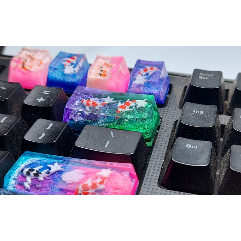 Máy tính & Laptop > Chuột & Bàn Phím > Bàn Phím Máy Tính || Keycap artisan cá koi 2u trang trí bàn phím cơ gaming (tone tím xanh)Còn hàng