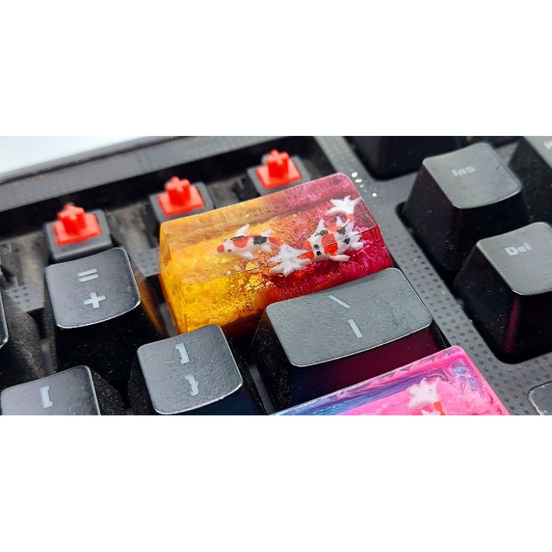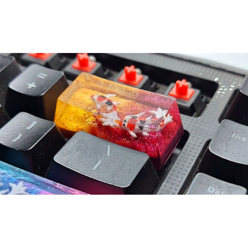 Keycap artisan cá koi 2U trang trí bàn phím cơ gaming (tone vàng đỏ)Chất liệu: resin ultra clear A50