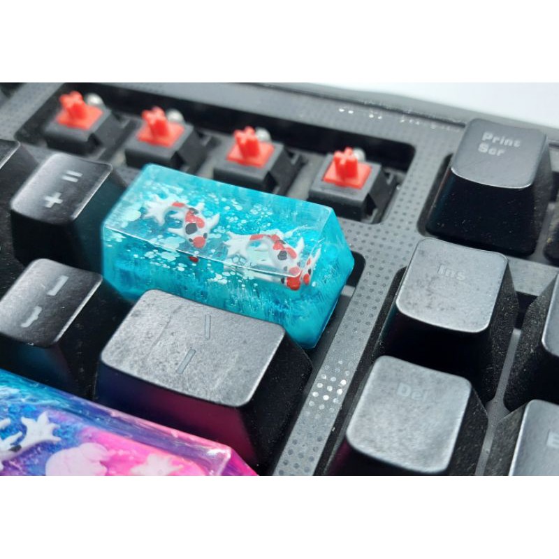 Keycap artisan cá koi 2U trang trí bàn phím cơ gaming (tone xanh lam)Chất liệu: resin ultra clear A50