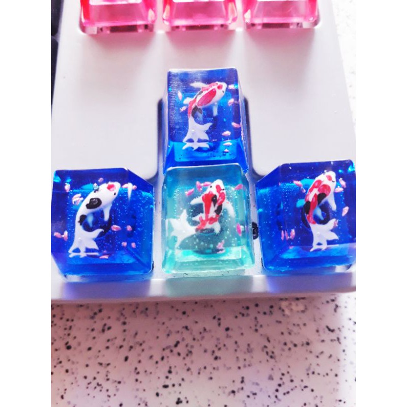 Keycap cá koi hiệu ứng cánh hoa anh đào.Chất liệu: resin ultra (loại chuyên dùng trang sức)