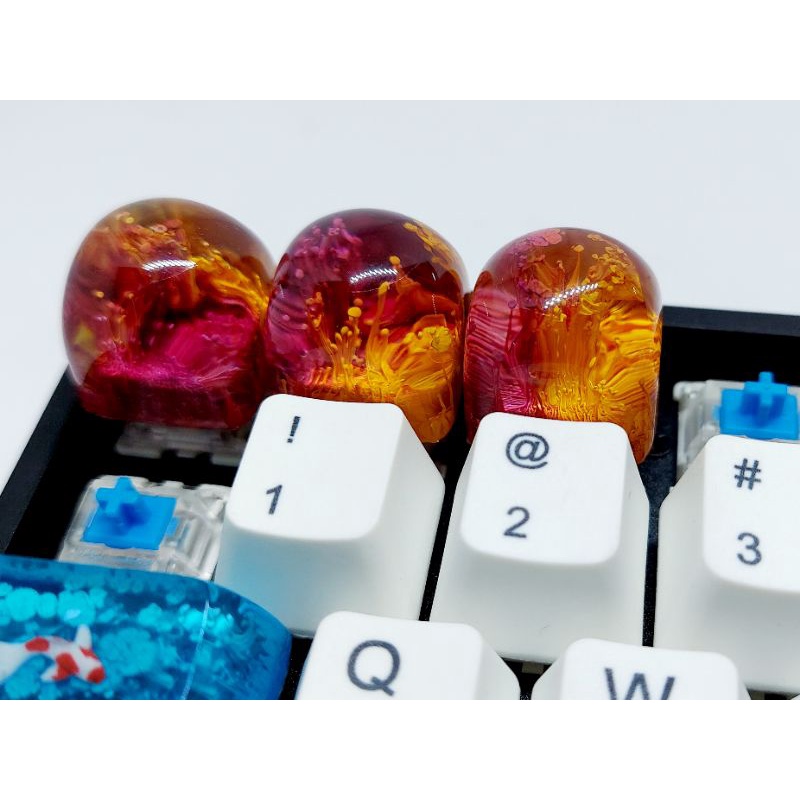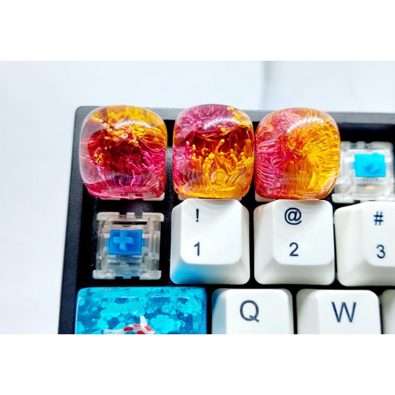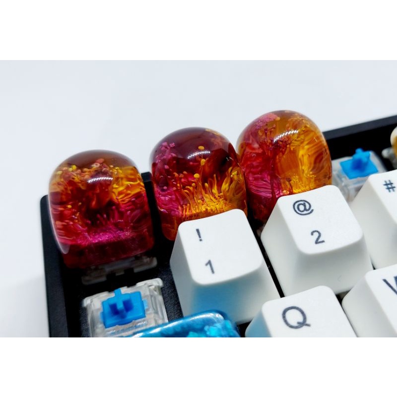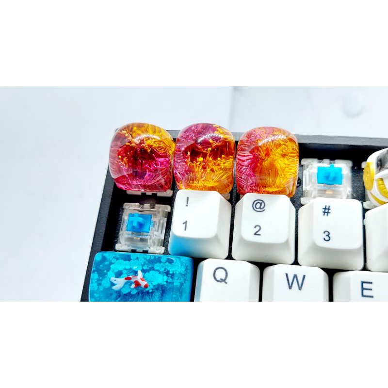 keycap DOM profile tone đỏ vàng trang trí bàn phím cơ gaming.Chất liệu: resin ultra clear