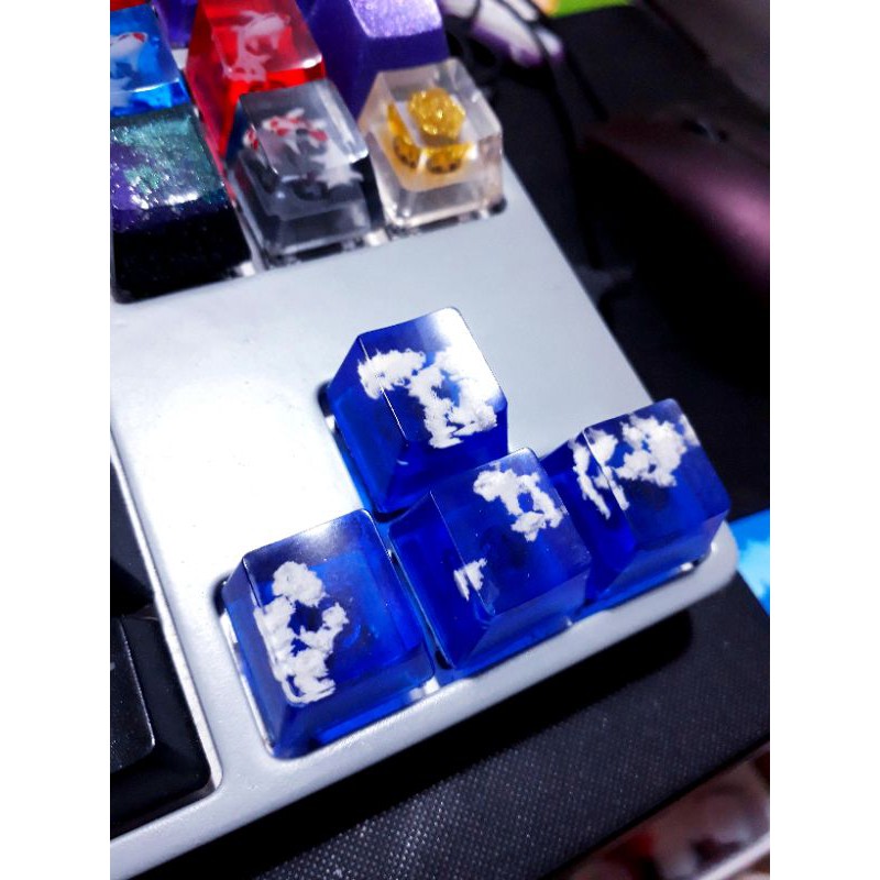 Keycap hiệu ứng mây trắng biển xanh trang trí bàn phím cơ.