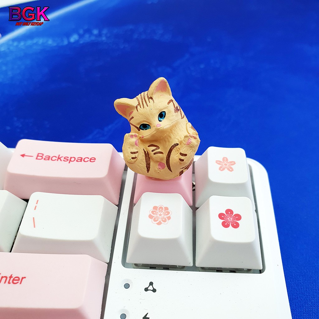 Keycap lẻ hình Mèo Con Nằm Ngửa Liếm Bi cực kỳ dễ thương ( keycap Artisan )