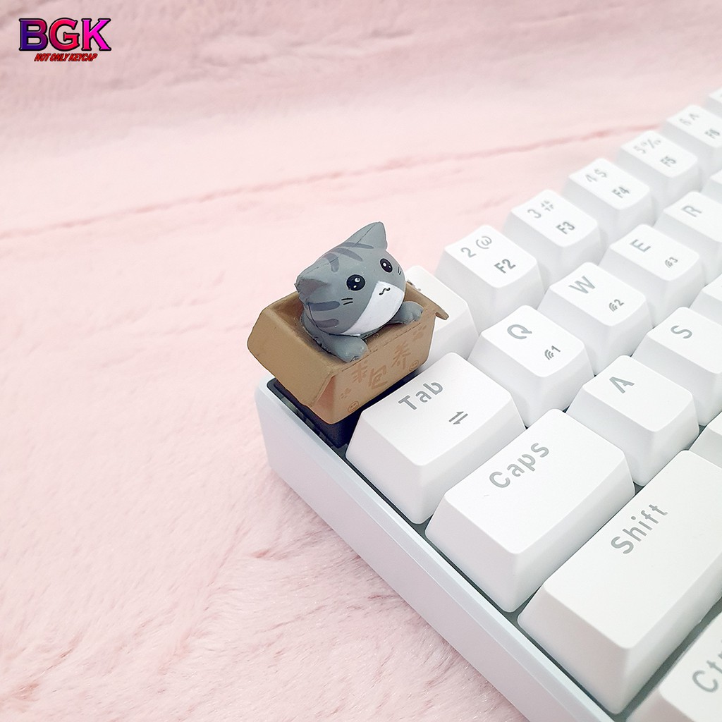 Máy tính & Laptop > Chuột & Bàn Phím > Khác || Keycap lẻ hình Mèo Con Trong Hộp siêu dễ thương Keycap ArtisanCòn hàng