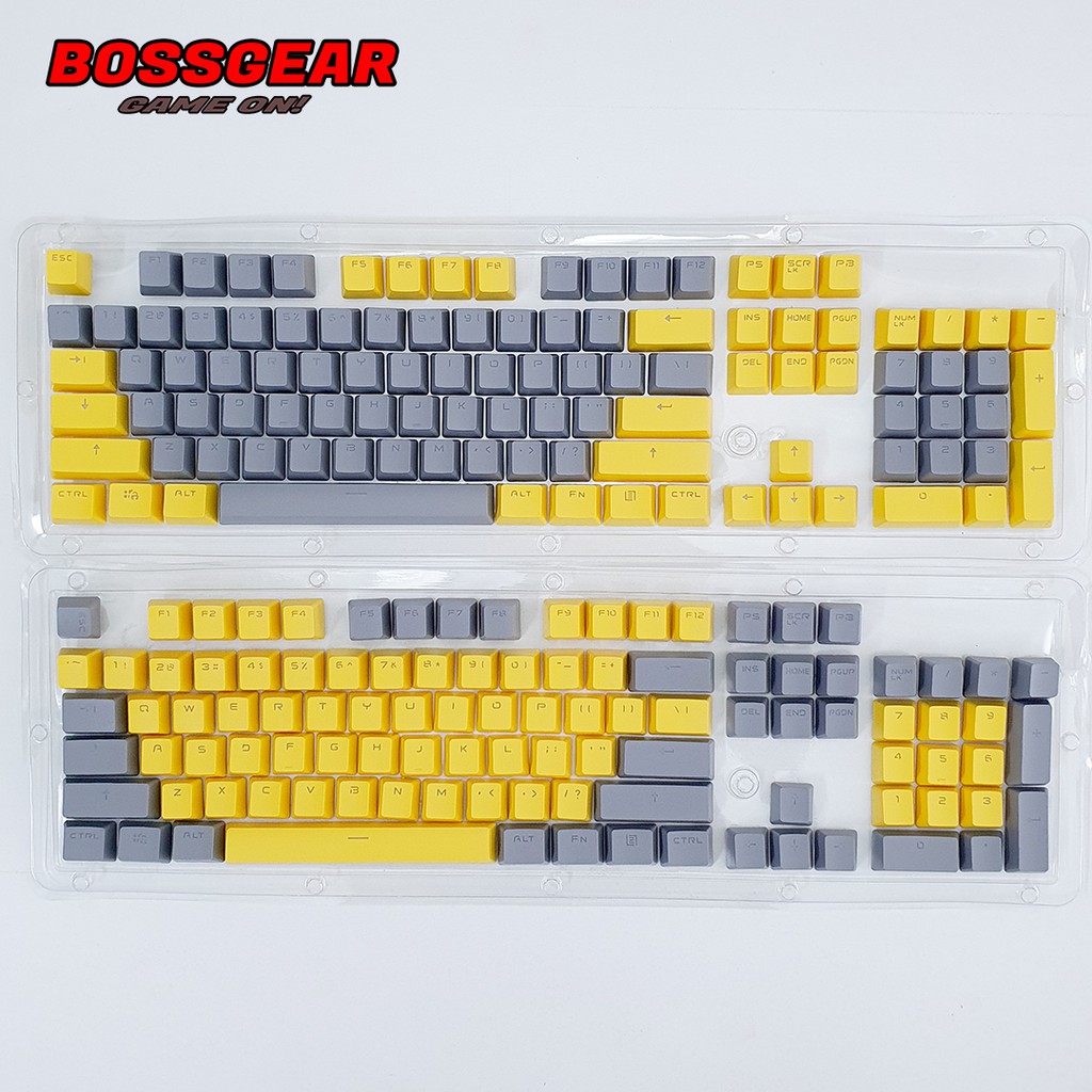 Máy tính & Laptop > Chuột & Bàn Phím > Khác || Bộ Keycap PBT Xám Vàng 104 Phím Double Shot Xuyên LED ( OEM Profile, Ansi layout )Còn hàng