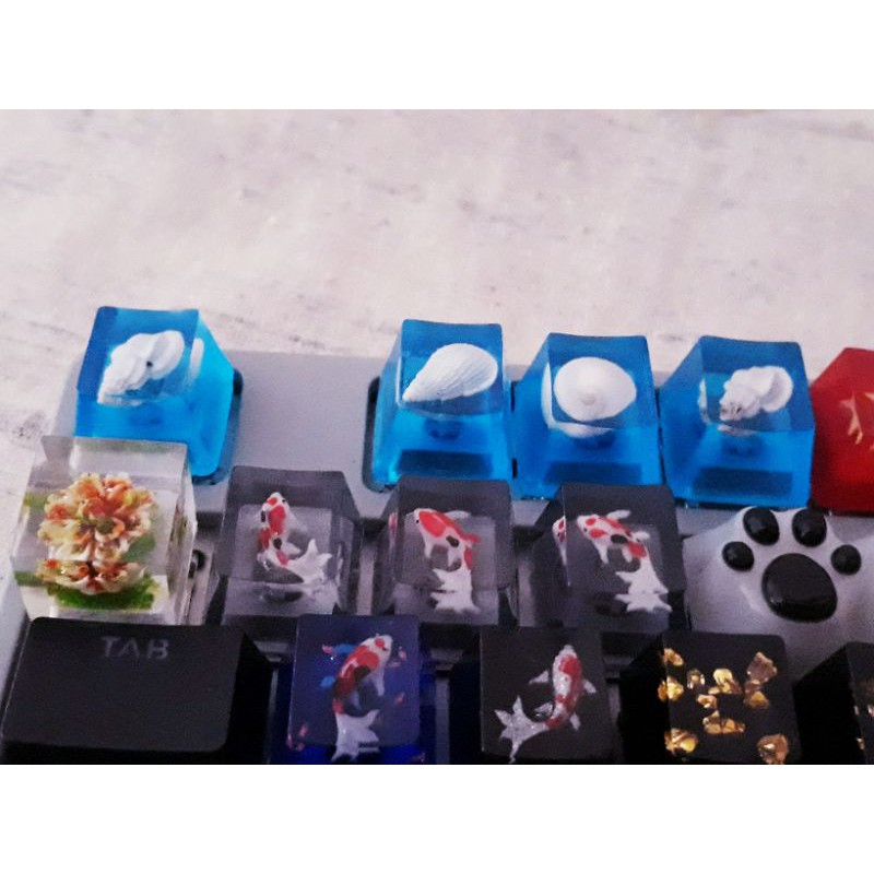 Keycap vỏ ốc trang trí bàn phím cơ cherry, OEM.Chất liệu: resin Ultra clear