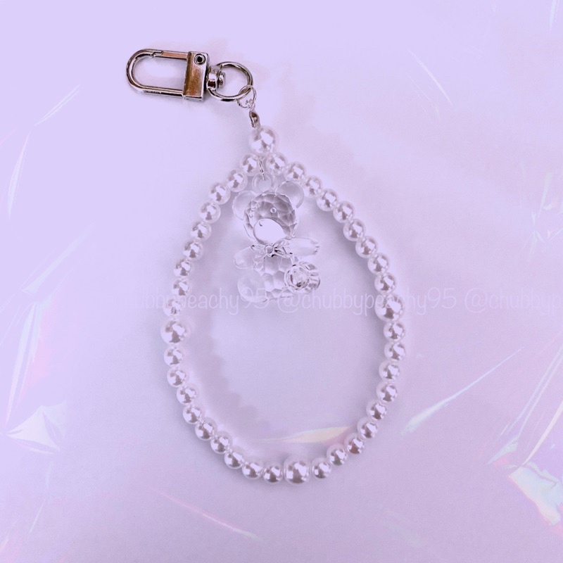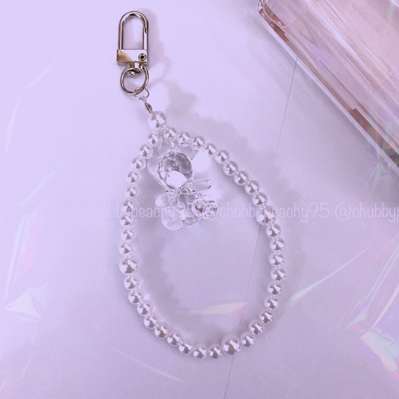 Điện Thoại & Phụ Kiện > Phụ kiện > Dây đeo điện thoại & Móc khóa || Keyring/Keychain/Móc khoá in ảnh mix dây hạt trai và charm gấu pha lê - Bigbear handmadeCòn hàng