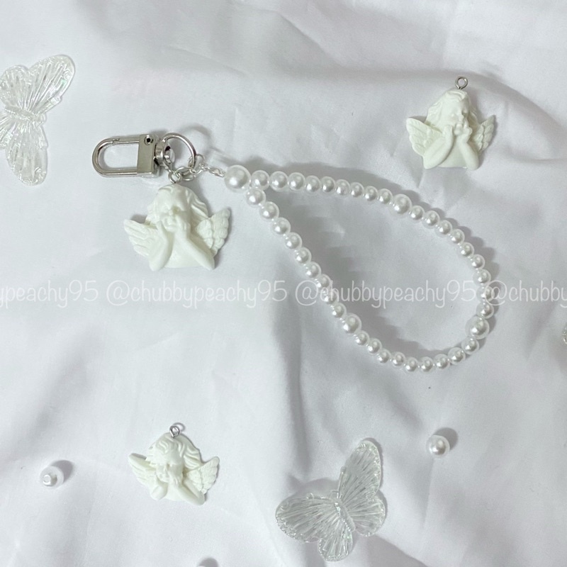 Điện Thoại & Phụ Kiện > Phụ kiện > Dây đeo điện thoại & Móc khóa || Keyring/Keychain/Móc khoá in ảnh mix dây hạt trai và charm thiên thần - Angel charm handmadeCòn hàng