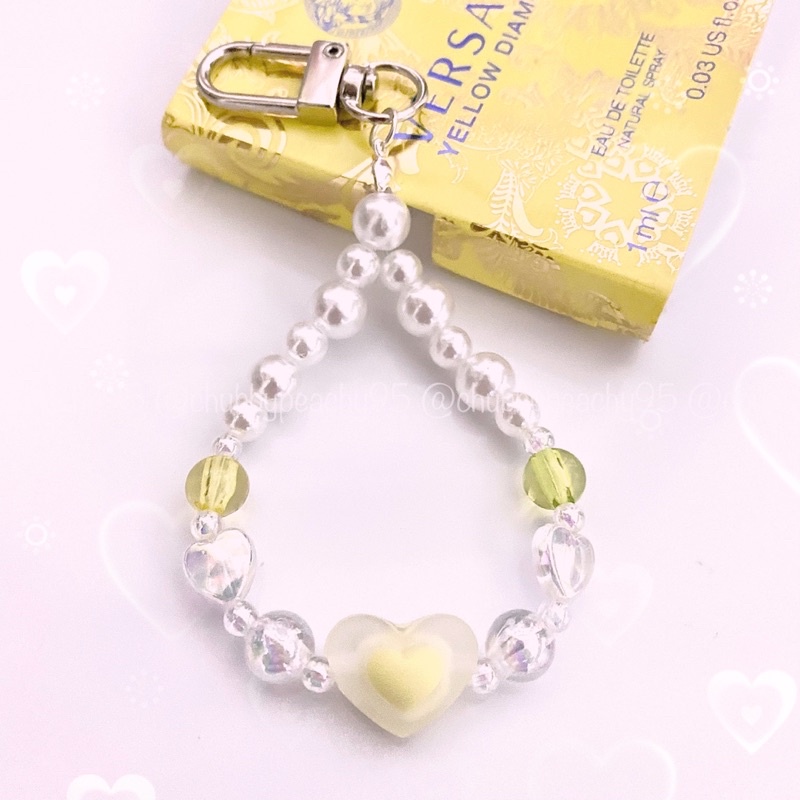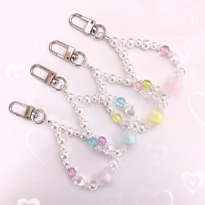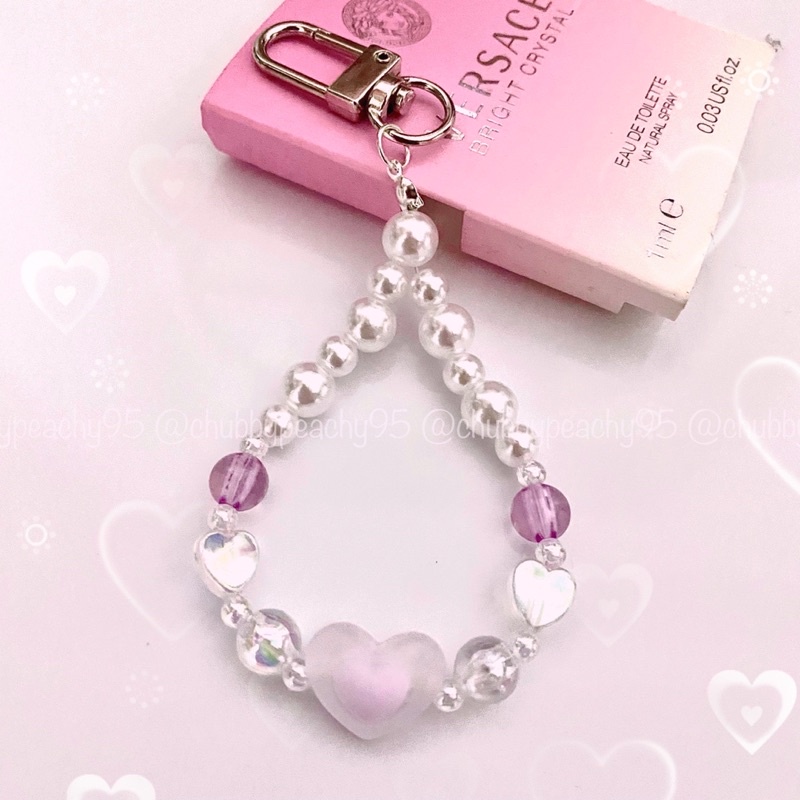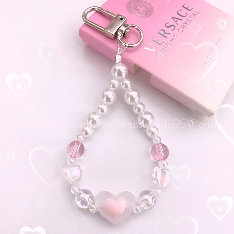 Điện Thoại & Phụ Kiện > Phụ kiện > Dây đeo điện thoại & Móc khóa || Keyring/Keychain/Móc khoá in ảnh mix dây hạt trai hologram cùng charm hình tim các màu handmadeCòn hàng