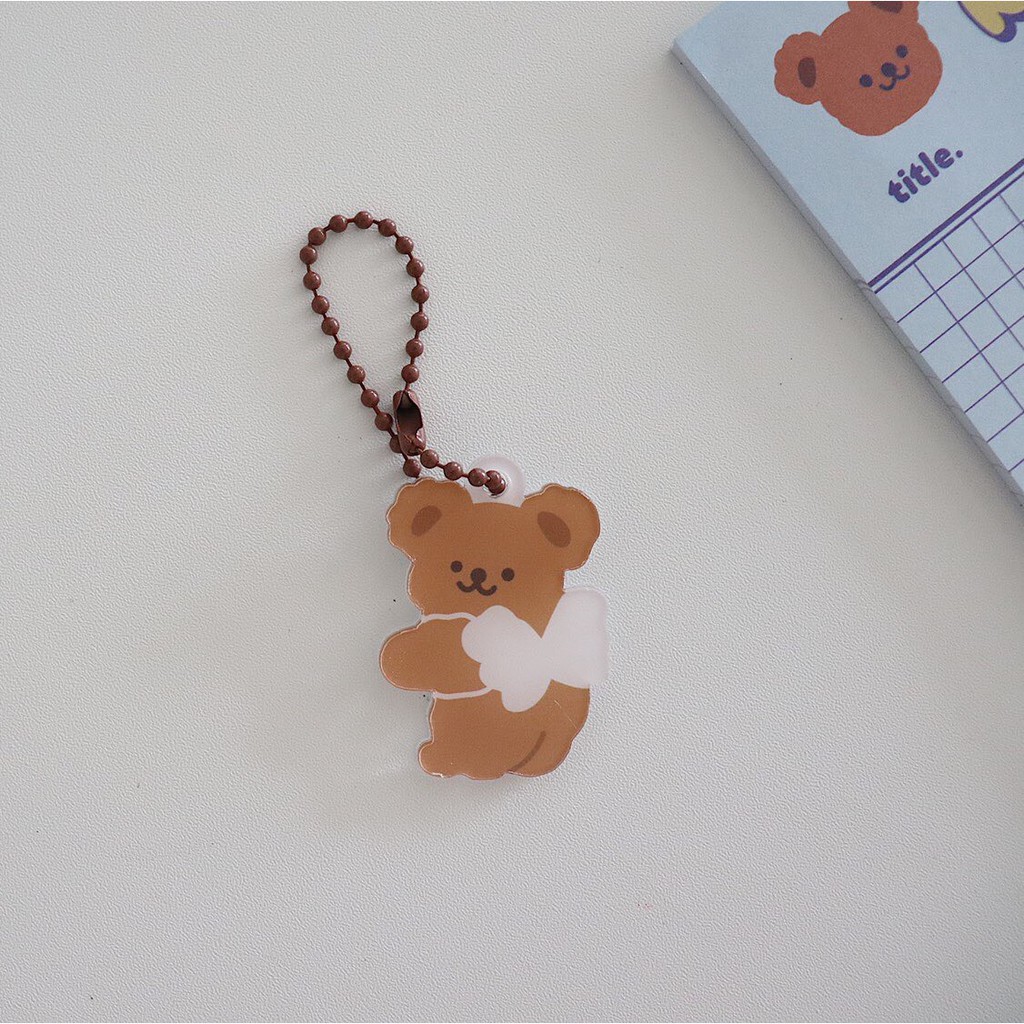 Keyring/ Móc khóa dây bi - hình gấu dễ thương - trang trí binder, collect book, móc khóa, treo balo túi xách,...