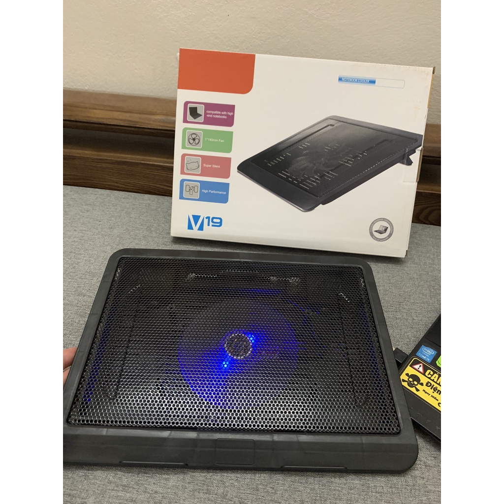 ✔️Đế tản nhiệt N19/V19 được trang bị một quạt có kích thước 14 cm, được đặt ở vị trí trung tâm mặt đế, giúp toàn bộ bề mặt của laptop đều được đối lưu không khí liên tục và nhanh chóng. Ngoài ra, đế còn được thiết kế mặt trên dạng lưới cùng các mặt còn lại có nhiều lỗ khoét rộng, đảm bảo khối không khí nóng từ laptop khi nhanh chóng được tỏa ra môi trường ngoài, tránh tình trạng khí nóng tích tụ lâu trong lòng đế làm ảnh hưởng đến hiệu năng làm việc.
