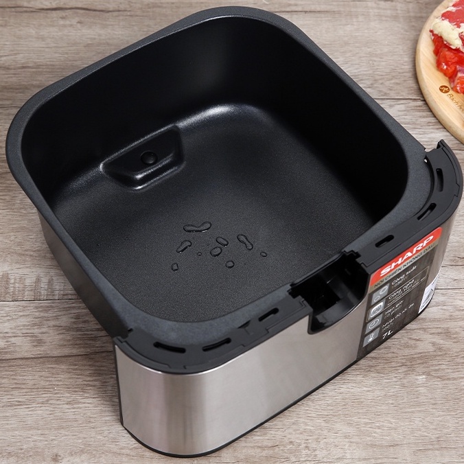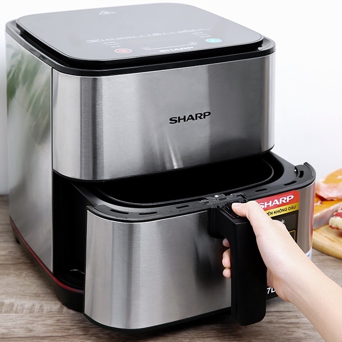 - Nồi chiên không dầu Sharp bảng điều khiển điện tử sang trọng và hiện đại, tùy chỉnh nhiệt độ và thời gian dễ dàng phù hợp để món ăn chín ngon đều