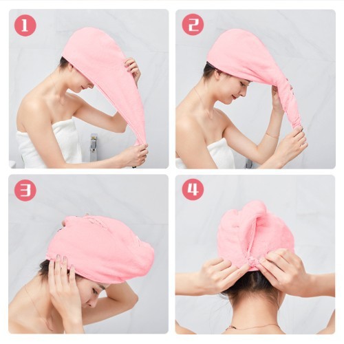 Giới thiệu Khăn quấn tóc gội đầu ủ khô tóc bằng vải cao cấp mềm mại dễ dàng sử dụng màu hồng xanh