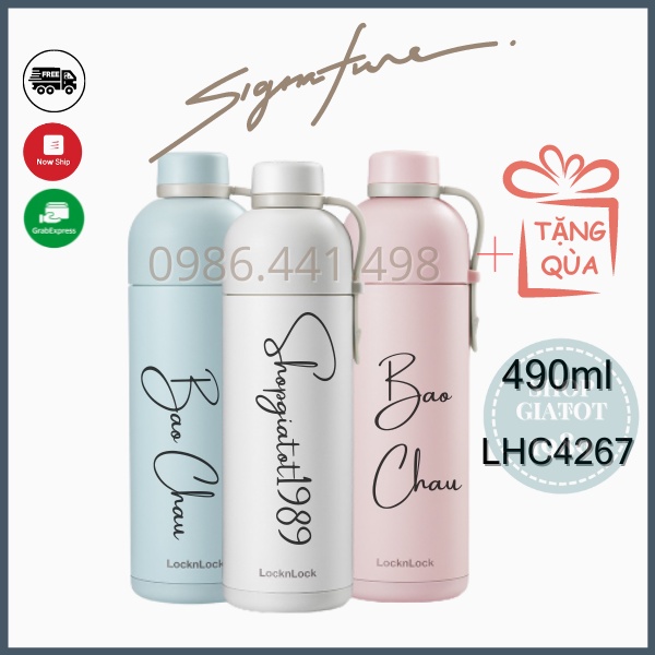 Nhà cửa & Đời sống > Bộ đồ bàn ăn > Bình nước & phụ kiện || [KHẮC TÊN] Bình giữ nhiệt Khắc Tên Cao Cấp Lock&Lock Belt Bottle 490ml - LHC4267 - SHOPGIATOT1989Còn hàng