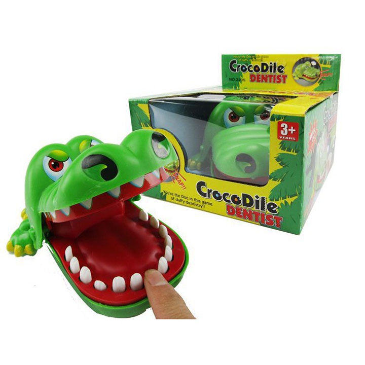 Đồ Chơi Khám Răng Cá Sấu Vui Nhộn Cho Bé có hình chú cá sấu ngộ nghĩnh với hàm răng to bóng loáng và nhiệm vụ của bạn là đóng giả thành một nha sĩ khám răng loại bỏ những chiếc răng sâu màu vàng cho chú cá sấu đó và thay bằng những chiếc răng trắngBạn sẽ phải khéo léo để khám cho chú cá sấu này bởi nếu không đúng chiếc răng sâu bạn sẽ bị chú cá sấu cắn vào tay rất nhẹ chỉ giật mình