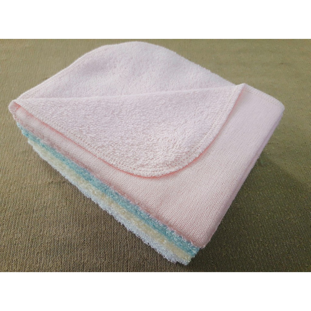 Khăn có 2 lớp gạc và lông mềm mại, có thể dùng làm khăn lau sữa hoặc khăn mặt đều được, kích thước: 25x25cm phù hợp với trẻ sơ sinh và trẻ nhỏ