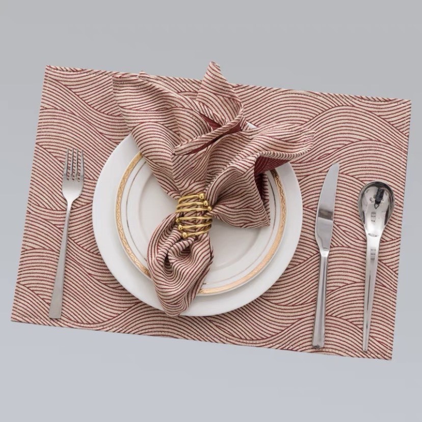 Khăn ăn, tấm lót phần ăn, runner, tap bàn, trang trí cao cấp, hoa văn đỏ nổi bật, sang trọng, hiện đại