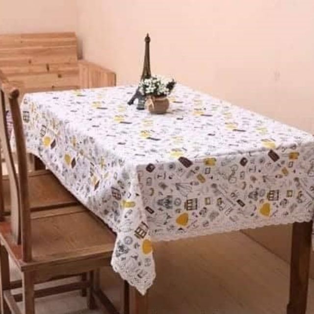 Khăn trải bàn dùng cho bàn tròn, bàn vuông, bàn oval, bàn chữ nhật đều được. Có nhiều kích thước cho khách chọnChất liệu vải bố canvas không thấm nước, dễ lau chùi.