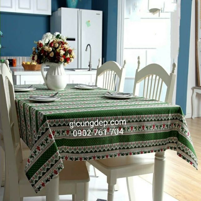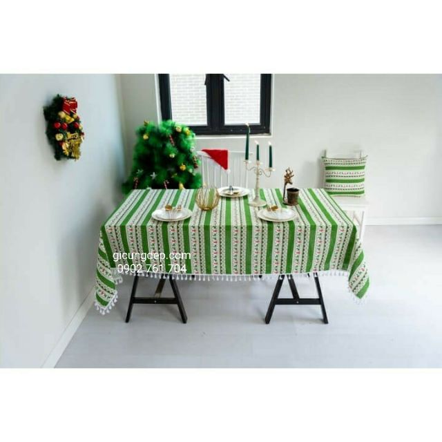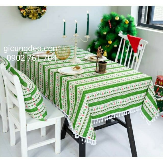 Nhà cửa & Đời sống > Trang trí nhà cửa > Khăn trải bàn || Khăn bàn đường diềm xanh tuần lộc noel giáng sinhCòn hàng