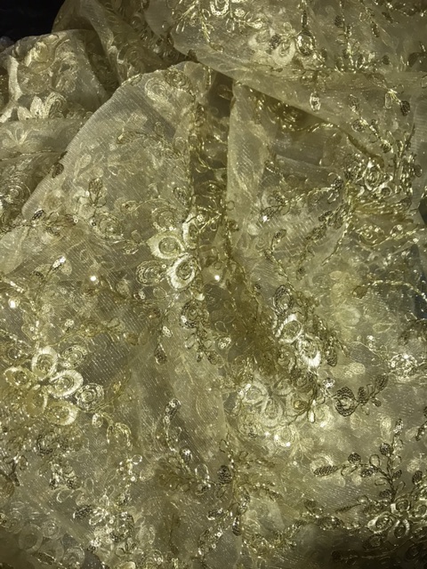 ✨shop mới nhập số lượng lớn vải khăn bàn ren kim tuyến đính hoa nổi trang trí mầu vàng đồng cực sang .✨Bề ngang của cuộn vải là 1,45 mét . ( giá bán là 1 mét dài . Ví dụ bạn mua 2 mét thì sẽ được tấm vải dài 2 mét ,rộng 1,45 mét nhé . Shop đăng kỹ để các bạn tránh mất công hỏi )