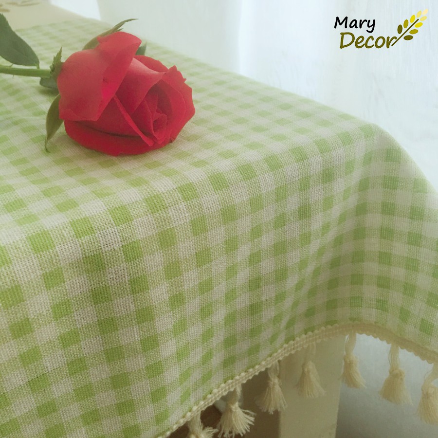 Khăn bàn vải trang trí nhà cửa nhiều mẫu mã cực đẹp - họa tiết caro xanh nhỏ KB-K01