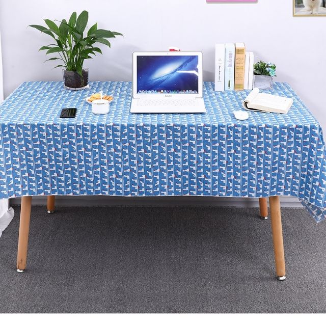 Thay đổi hình ảnh căn phòng, đơn giản chỉ là thay đổi khăn trải bàn.Khăn nền màu ngà ngà, họa tiết màu xanh
