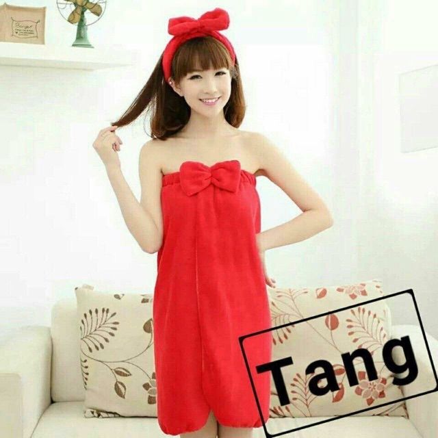 Nhà cửa & Đời sống > Đồ dùng phòng tắm > Khăn mặt, khăn tắm, áo choàng tắm > Khác || Bộ khăn choàng tắm + kèm băng đô nơ quấn đầuCòn hàng