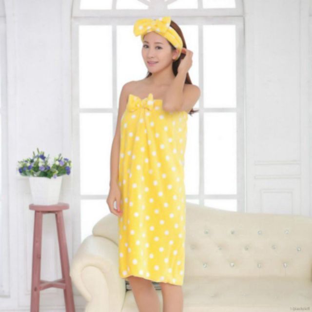 Bộ khăn choàng tắm + kèm băng đô nơ quấn đầu