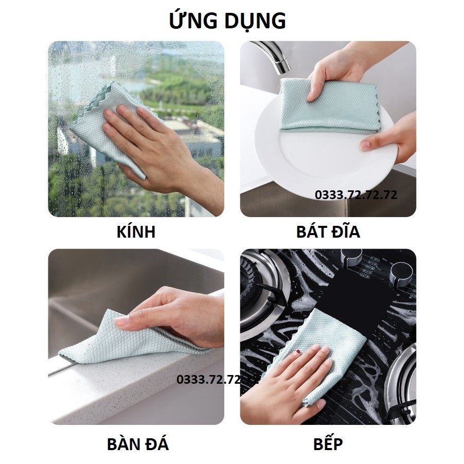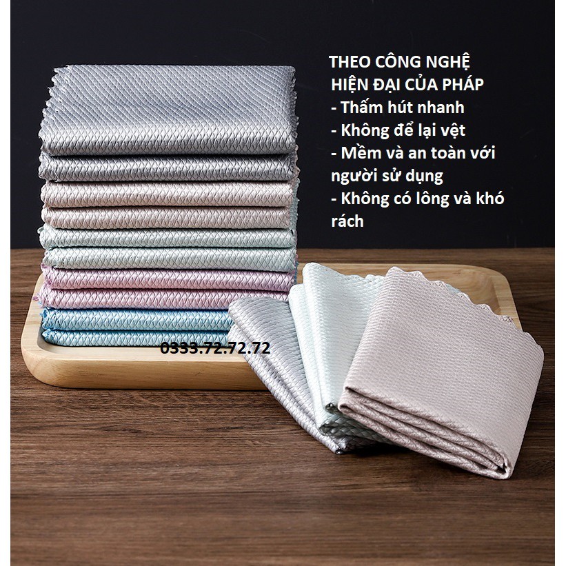 Khăn Chuyên Lau Kính Lau Màn Hình Đa Năng, Lau Gương, Khăn Lau Bát Đĩa Cốc Nhà Bếp không rụng lông, Khăn vảy cá