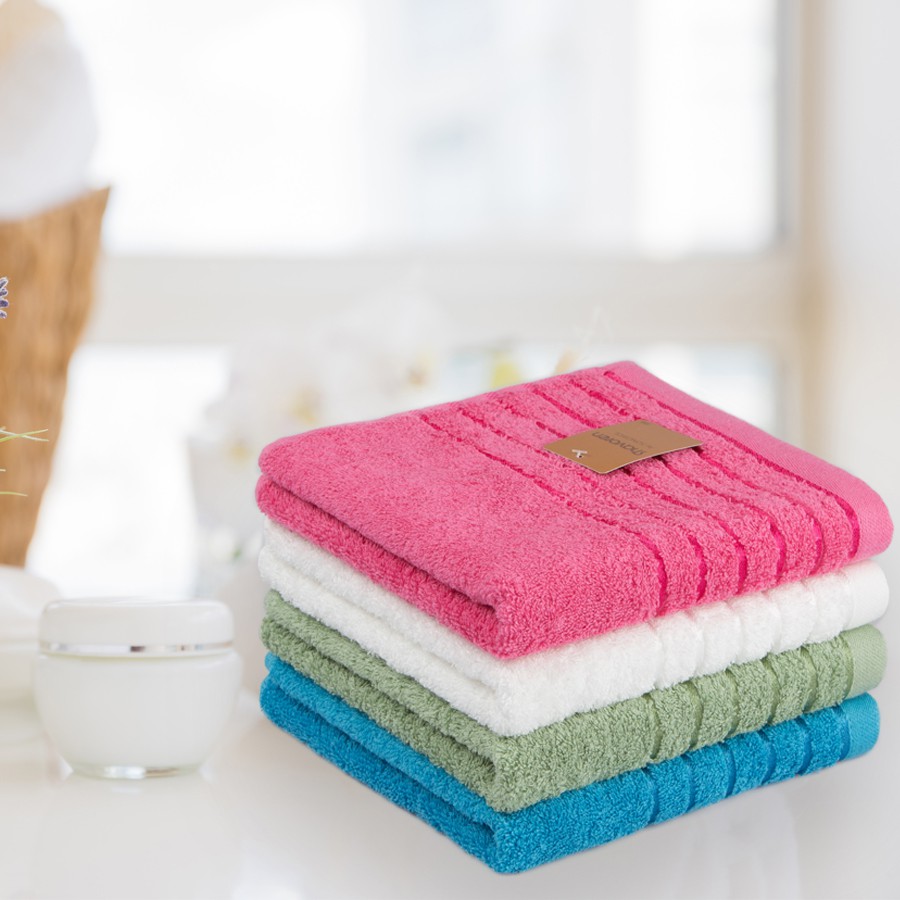 Khăn được dệt từ sợi bông cao cấp 20s/1, tạo cho khăn sự mềm mại tuyệt vời. Khăn chất lượng rất tốt, tuyệt đối không bị xơ cứng, biến dạng khi giặt nhiều lần, và màu sắc được duy trì rất lâu.