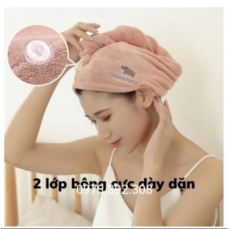- Chất liệu: Khăn cuốn tóc gội đầu sợi siêu mềm thấm hút nhanh