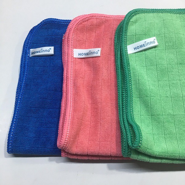 Khăn lau đa năng (microfiber) Homeinno, có ba màu xanh lá, đỏ hồng, xanh dương.Khăn đa năng, khăn lau siêu sạch lau sạch không để lại bụi vải, hút thấm cao hút sạch chất bẩn và vi khuẩn.