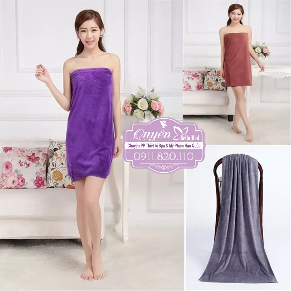 👉 Khăn quấn người spa có 13 màu có sẵn lựa chọn: Ghi xám, Vàng bò, Xanh lá, Tím, Xanh rêu, Đỏ mận, Hồng sen, Xanh cổ vịt, Trắng, Nâu socola, Xanh coban, Đỏ tươi, Vàng.