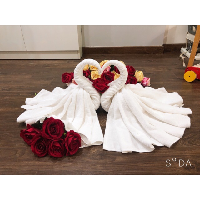 Nhà cửa & Đời sống > Đồ dùng phòng tắm > Khăn mặt, khăn tắm, áo choàng tắm > Khăn mặt || KHĂN GẤP THIÊN NGA PHÒNG CƯỚI NẶNG 400grCòn hàng