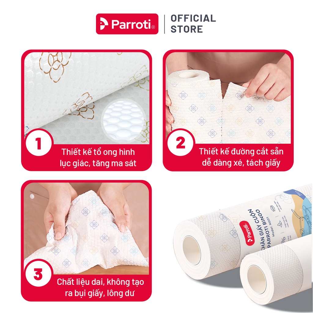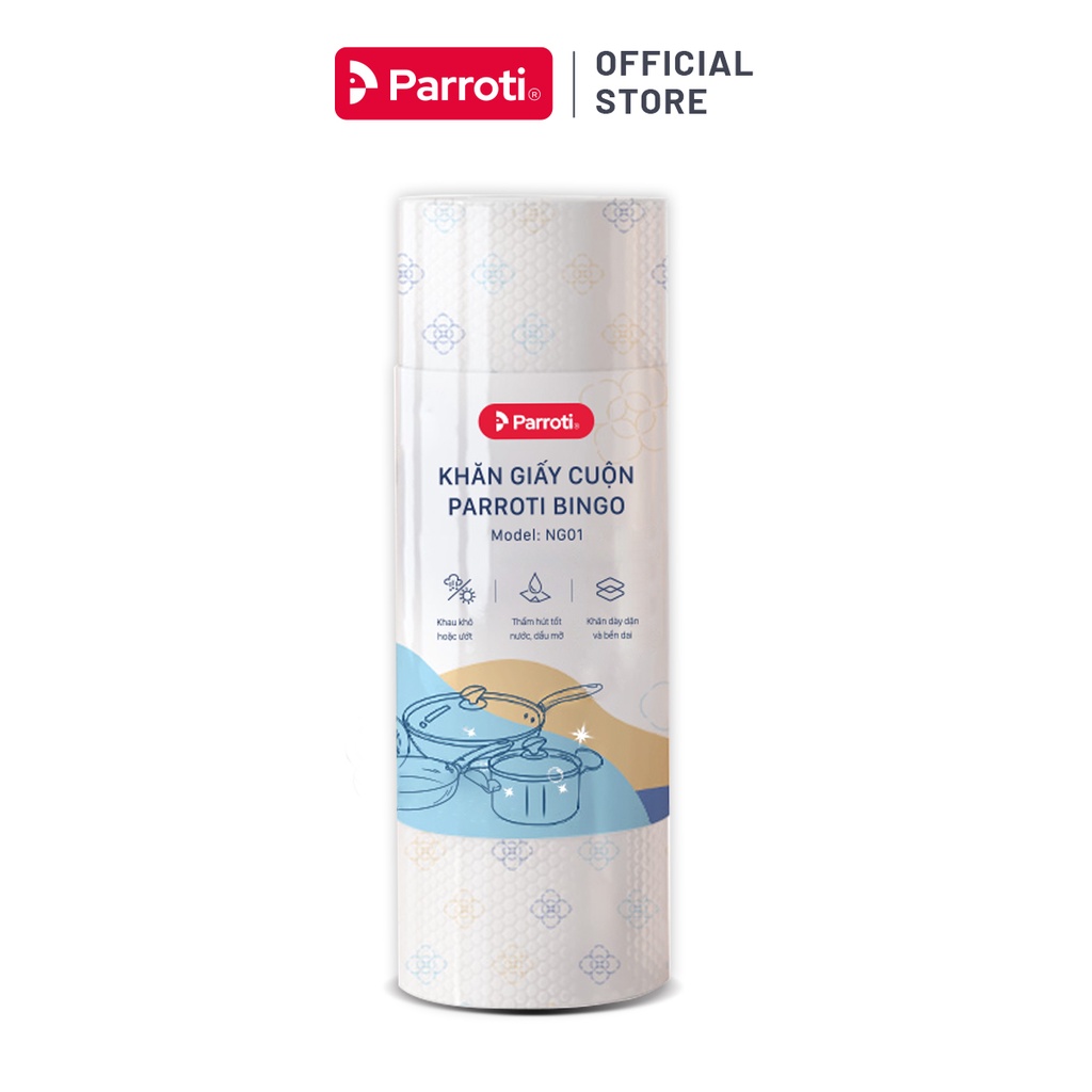 Nhà cửa & Đời sống > Dụng cụ chăm sóc nhà cửa > Khăn vệ sinh || Khăn giấy cuộn đa năng, lau bếp, lau kính, lau chén bát, lau tay (50 khăn/cuộn 25x25cm) - Parroti Bingo NG01Còn hàng