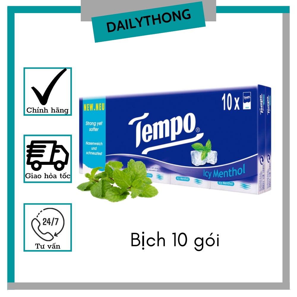 Khăn giấy TEMPO Icy Menthol (1 lốc 10 Gói - Bạc hà)Thương hiệu: TEMPO